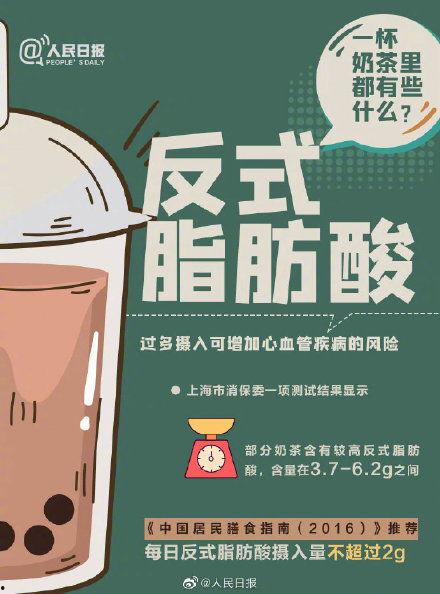 2. 奶精奶茶:奶精中含有反式脂肪酸,过多摄入会增加心血管疾病的风险。
